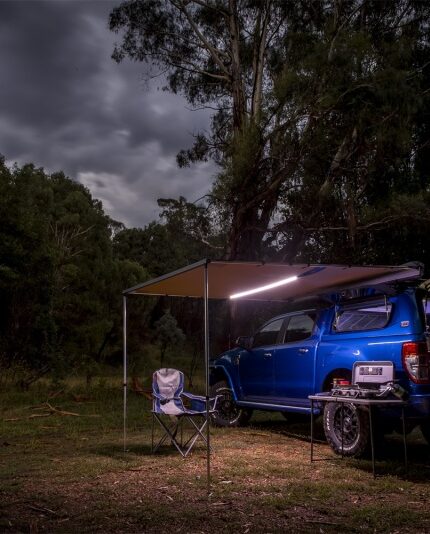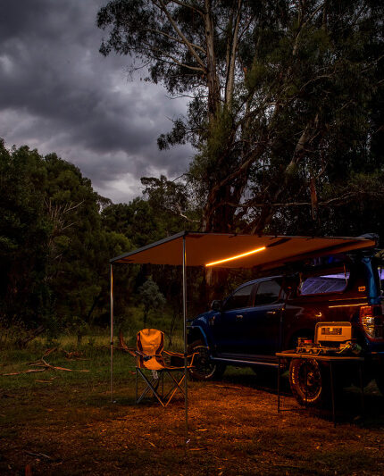 ARB Aluminum Awning, Black Frame, 8.2FT x 8.2FT, Installed with LED Light Strip
