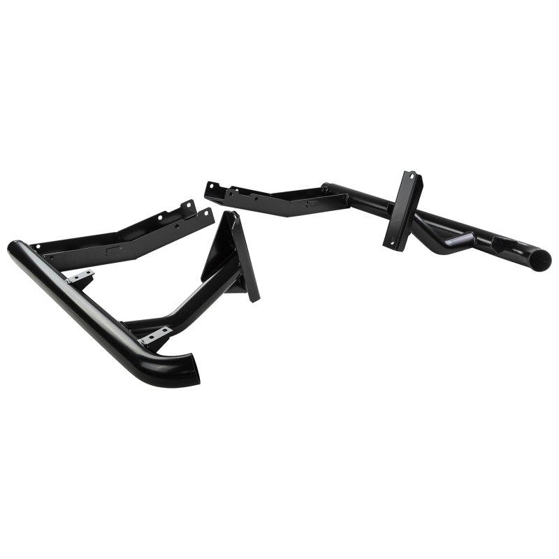 Side rail and combination steps to protect the front quarter panels and lower sills. The integrated step offers improved vehicle access. While they offer an excellent barrier against rock ledges, they are not considered a true rock slider that might be required for aggressive rock crawling.