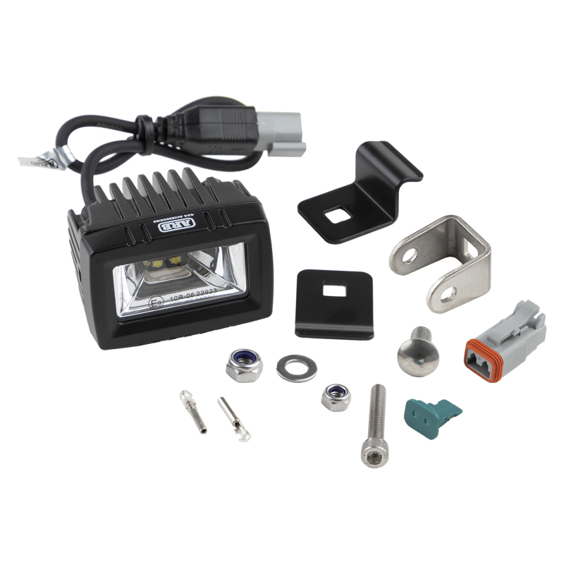 The ARB Auxilliary Light includes a unique ARB BASE Rack bracket, over molded DT connector suitable for BASE Rack channelling, an additional DT connector for custom wiring, and a scene lighting beam to reduce hot spots in beam output and reduce glare for reverse cameras.The unique ARB BASE Rack bracket provides the ability for installation to any part of the BASE Rack’s dovetail system. It can be wired to provide additional aux lighting around the vehicle for camping, working, or reverse lighting. Being compact at 2.8 x 2.21 inches, it allows for mounting in close-fitting areas and along the edge of the BASE Rack to minimize damage on tight roads and close parking. Its compact size further provides a sleek look and allows for a stealthy configuration. The two 10W OSRAM LEDs (20W total) provide intense lighting that spreads over a larger area than standard auxiliary lights, making the beam a true area light and minimizing hot spots from focused beams. Reduction of hot spots translates to clear images being sent through your reverse camera system when used at night or in dim environments as well as clear, not glaring lighting around the camp or worksite. Included with the ARB BASE Rack Auxiliary Light is 1 x 20W LED Light, 1 x Bracket to suit the ARB BASE Rack or Classic Racks, and both Male and Female DT connectors.