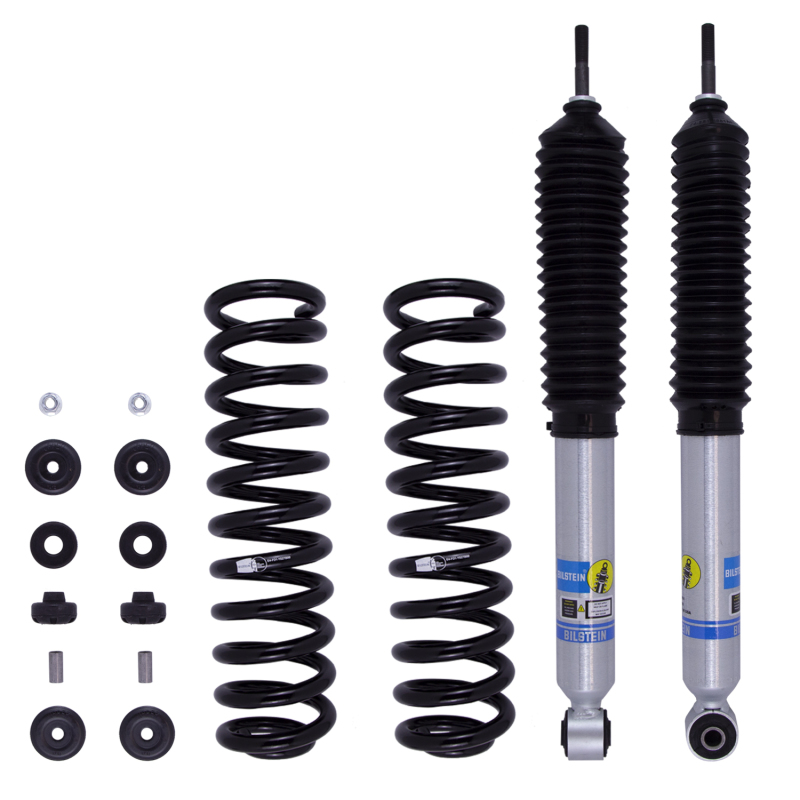 Bilstein B8 5112 suspension kit is a high performance leveling kit which provides more ground clearance, allows for larger tires, and increases wheel travel. The Bilstein B8 5112 suspension kit is for front applications and consists of (2) B8 5100 shock absorbers combined with (2) matched coil springs. This simple yet effective kit will bolt into the factory locations with no modifications. The Bilstein B8 5112 suspension kit provides a smooth and stable ride both on and off-road.
