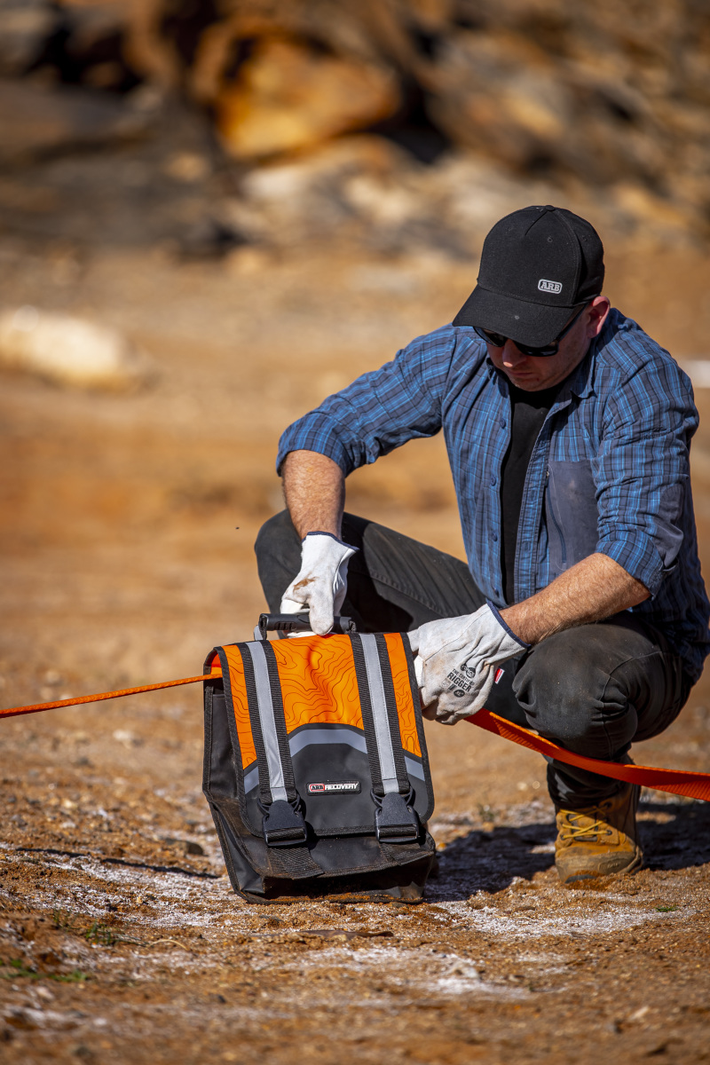 The updated ARB Weekender Recovery kit sports a new heavy-duty PVC outer shell and modernized color. The 600gsm PVC outer material provides a rugged exterior that is not only ideal for recovery situations, but also provides easy cleaning and prevents the bag from getting damp. Its slim design allows easy storage in your vehicle or ARB Outback Solutions drawers, and keeps vital recovery equipment at-the-ready. Included in the kit is the high-quality ARB 17,600 lbs snatch strap (ARB705LB), two type “S” Galvanized 4.75T rated shackles, one set of recovery gloves, and the rugged PVC recovery bag featuring dual internal pockets with the ARB topographic design print. Dual compartments provide space for a recovery dampener (ARB220, sold separately) to further complement your weekend recovery setup. When your vehicle is stuck in knee-deep mud, bogged in the desert, or aiding a recovery at the beach, reliability, performance and durability of your recovery gear is paramount. You can rely on ARB recovery products for you and your vehicle’s safety.