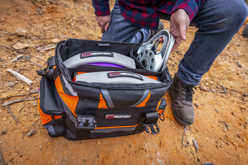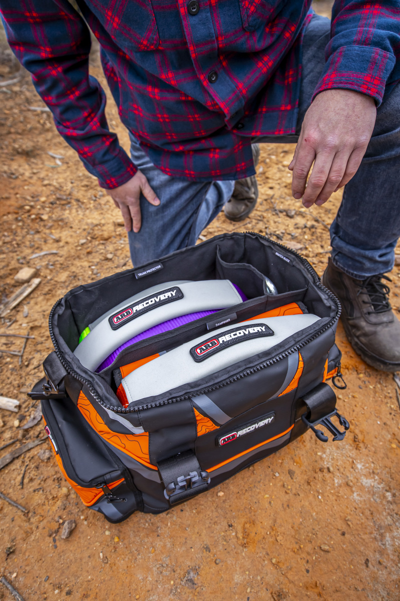 The updated ARB Premium Recovery Kit sports a new heavy-duty PVC outer shell and modernized colors. The 600gsm PVC outer provides a rugged exterior that is perfect for recovery situations because it makes cleaning easier and helps keep the bag and its contents from getting damp. Additional updates include named compartments within the bag to keep vital vehicle recovery equipment in its place and on-hand should the need arise, a #10 SBS zippered top, and improved carry handles. The multiple, named compartments provide space for the included snatch strap, tree trunk protector, winch extension strap, shackles, gloves, snatch block, and recovery damper. Included in the kit is the highly regarded and awarded ARB 17,600 lbs vehicle snatch strap (ARB705LB). The ARB snatch strap which has been a winner of many recovery strap tests throughout Australia and the world, has a genuine 20% stretch to reduce shock to components on your vehicle and will assist in recovery situations. Also included in the ARB Premium Recovery Kit (RK9A), is the highly regarded competition snatch block (10100020) which is used by elite drivers in some of the world’s toughest challenges and courses, as well as military applications in most parts of the world. When selecting a vehicle recovery strap (snatch strap) it is recommended that the minimum breaking strength of the strap should be between two and three times the gross vehicle mass (GVM) of any vehicle it is used with, and that the strap must be suited to the GVM of the lighter of the two vehicles used in the recovery process. The 17,600 lbs recovery strap is therefore suitable for vehicles with a GVM between the range of 5800 to 8800 lbs, encompassing a majority of 4WD vehicles. This is only to be used as a general guide.
